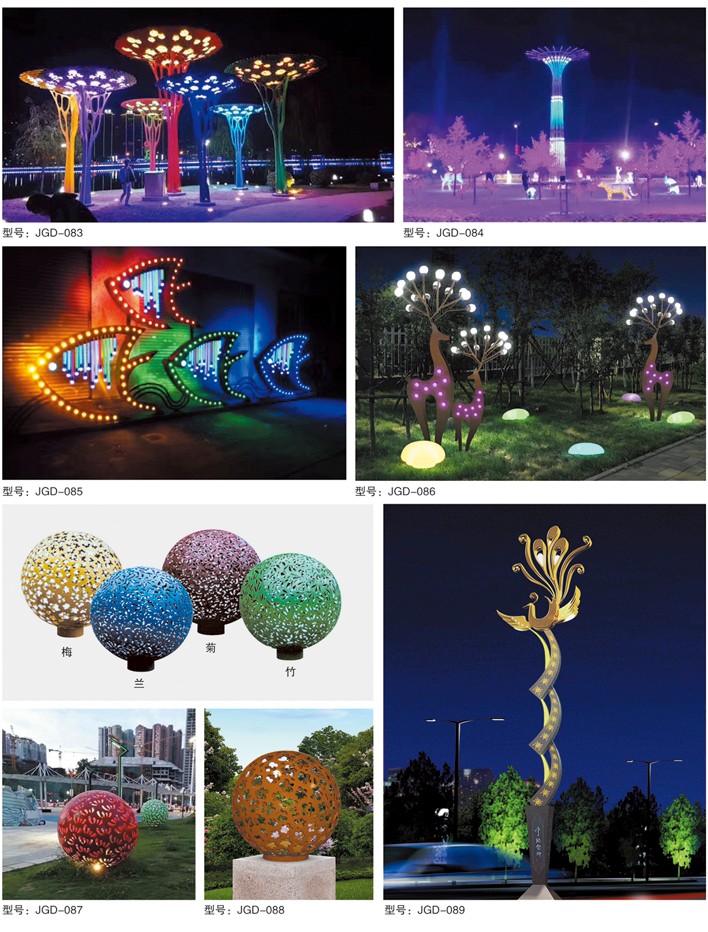 裝飾型景觀燈飾產(chǎn)品。設(shè)計風(fēng)格或抽象前衛(wèi)如藝術(shù)雕塑,或仿真寫實如自然常態(tài)。在展示現(xiàn)代精美制造工藝同時,又融入多種具有一定地方或民族文化特式的元素,即可美化亮化環(huán)境,又能成為- -座城市一個地區(qū)一方民族文化的象征。無論是大型文化廣場還是時尚建筑群落都有他適合的道理。極具觀賞和使用價值。